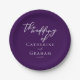This royal purple wedding round paper plate features beautiful white typography on a solid deep violet for an evening ceremony in the winter. Minimalist script and a bold colour makes your reception decor pop and stand out from the crowd.
