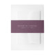 This wedding invitation band features the names of the wedding couple and date in white against a dark purple colour back side. Check out other matching wedding items https://www.zazzle.com/collections/mauve_layered_geometric_dark_purple_wedding-119712420789591185?rf=238364477188679314&tc=rc .