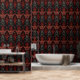 Baroque Red Wallpaper | Halloween Decor. Enhance your space with my Dark Red and Black Baroque Gothic Arches Wallpaper. This mystical design features intertwined gothic arches, inspired by Dracula's castle and romantic gothic novels like "The Masque of the Red Death." Perfect for a feature wall in a girl's bedroom, gothic boudoir, or as a spooky backdrop for a Halloween party. The removable wallpaper is ideal for adding a dark, romantic vibe to any room or event.