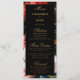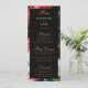 Dark Red and Black Floral Wedding Menu Card. Floral background under a black overlay. Copper coloured Text is fully customisable. Dark Red background on back of card can be changed to the colour of your choice. Our ALEXANDRIA wedding suite collection is filled with florals on both black and red backgrounds all using a copper coloured text. Moody, elegant and modern.