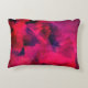 A pillow with a cool abstract background. Dark red and purple brush strokes create a bold modern vibrant design.
