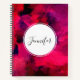 Spiral notebook with a cool abstract background. Dark red and purple brush strokes create a bold modern vibrant design.