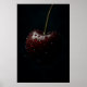 Dark Red Cherry with Dew Drops on Black Poster