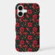 A dramatic and elegant Christmas floral pattern featuring deep red winter blossoms, golden seed pods, and vivid berries set against a rich dark background. The intricate linework and warm festive tones create a luxurious holiday aesthetic, ideal for gift wrap, textiles, stationery, home decor, and stylish seasonal accessories. Perfect for those who love bold, high-end Christmas botanicals.