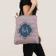 Dark Red Deco Scallops Navy Blue Monogram Name Tote Bag