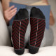 A serious design with dark red diagonal stripes on dark socks. This version has your initials in dark red on a black circle on both calves. Can be worn in the office, when donating blood or visiting the hairdresser.