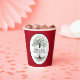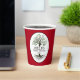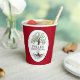 Family reunion paper cups with a family tree with your Surname and reunion year on a dark red backgound.