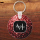Dark Red faux Glitter sparkles Glamor Monogram Key Ring