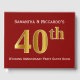 Dark Red, Faux Gold 40th Wedding Anniversary Party Guest Book