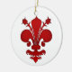 Super cute Christmas ornament featuring a fleur des lys in red on it. Very cool.