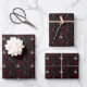 Dark Red & Ivory Flowers on Black Wrapping Paper Sheet