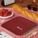 Dark Red, Maroon solid colour, white text, Paper Plate