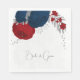 Romantic dark red & navy blue flowers with silver leaves botanical wedding paper napkin.