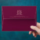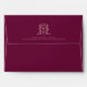 Dark wine red with inside white and light peach coloured hand-drawn growing leaf and berries botanical line art around a crest topped with a heart crown monogram wedding envelopes. Personalise with your own monogram initials and return senders address ideal in case if your mail gets lost or guests have moved address. Other colours and matching items are available. © Original hand drawing and design by Sarah Trett for www.mylittleedenweddings.com on Zazzle.