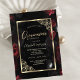 Dark Red Roses Gold Frame Black Quinceañera Invitation