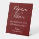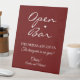 Dark Red Signature Script Open Bar Wedding Pedestal Sign