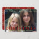 Green and Red Snowflake pattern with dark red background on the backside of this photo card, with photo placement on the front side.