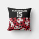 Pillow. Featuring a collage of soccer balls in dark red, white and black colour is ready for you to personalise with the name and sport number. ✔NOTE: ONLY CHANGE THE TEMPLATE AREAS NEEDED! 😀 If needed, you can remove the text and start fresh adding whatever text and font you like. 📌If you need further customisation, please click the "Click to Customise further" or "Customise or Edit Design" button and use our design tool to resize, rotate, change text colour, add text and so much more. ⭐This Product is 100% Customisable. Graphics and / or text can be added, deleted, moved, resized, changed around, rotated, etc... ⭐99% of my designs in my store are done in layers. This makes it easy for you to resize and move the graphics and text around so that it will fit each product perfectly. 📌 (Please be sure to resize or move graphics if needed before ordering) You can also "TRANSFER DESIGN" on other Zazzle products and adjust the design to fit most of Zazzle items. (button is down on the right side of the page) This design is made with high resolution vector and/or digital graphics for a professional print. 📌NOTE: (THIS IS A PRINT. All #Zazzlemade product designs are "prints" unless otherwise stated under "About This Product" on the left side of this page) The design will be printed "EXACTLY" like you see it on the screen and on the product...so please make sure when you do your changes on the resizing of any of the graphics or text that it fits in the areas correctly and that your spelling and wording is how you like it to be in size, colour and font. If you have any questions about the "DESIGN ONLY" or need help please contact me at ✉ siggyscott@comcast.net or visit my store link: https://www.zazzle.com/store/designsbydonnasiggy (Copy and Paste) I'll be happy to help. 📌 ALL OTHER QUESTIONS (shipping, refund, the printing, the product, etc...) please contact Zazzle or the Maker ⭐DIRECTLY⭐. Thank you for the support and stopping by my store - DesignsbyDonnaSiggy. © Donna Siegrist ALL RIGHT RESERVED (This is an 🥇ORIGINAL ART DESIGN by Donna Siegrist) ⭐⭐⭐ ZAZZLE promises 100% satisfaction. If you don't absolutely love it, Zazzle will take it back! ⭐⭐⭐ 1-888-8ZAZZLE (1-888-892-9953) Phone hours: Mon - Fri: 9AM - 5PM PT (12PM - 8PM ET)