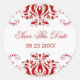 Dark Red Swirl Lace & White Damasks Classic Round Sticker