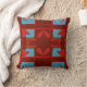 Dark Red Turquoise Mediterranean Design on Brown Cushion