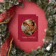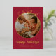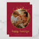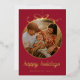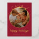 Dark Red Whimsical Ornament & Bow Photo Foil Holiday Card - all text is editable