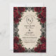 Make a bold statement with this dark and romantic wedding design, featuring deep crimson roses, intricate black lace accents, and vintage botanical details. Perfect for gothic, moody, or Victorian-inspired celebrations, this floral design adds an air of timeless elegance to your special day.