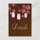 Dark Rustic Pink Floral Mason Jars Wedding Details Enclosure Card