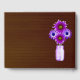 Pretty purple flowers, mason jar on a dark wood background decorate this guestbook. Wedding guest books are fun for both the couple and their celebrants. Invite attendees to leave you well-wishes at your reception, and you're guaranteed to have a keepsake to look back on for years to come. Plus, your guests will get to leave their mark on your event, not to mention put in writing whatever they didn't have a chance to express in person on the big day. Personalise the book by changing the text in the fields provided. You can change font style, size, and colour.