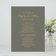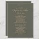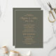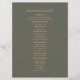 Double-sided dark sage green wedding program/bridal party listing. The front of this program has the names of the bride and groom and their wedding date along with a thank you message to your guests. It gives the schedule of the ceremony. On the back, you have space to add the names of your bridal party.