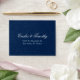 This envelope features faded, script writing of a love poem on the dark blue inside lining. The outside is a luxurious, distressed deep navy blue damask pattern. The design is lightly distressed for a charmingly vintage look throughout. The envelope is designed for RSVP cards, so there is a return address on the front, in script and serif fonts. If you wish to use this envelope for other purposes, simply leave the Name and Address fields blank and hand write the address.