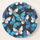 Dark Seamless Pattern with Blue Butterflies Morpho Coaster