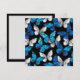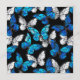 Realistic, blue and white butterflies seamless pattern on black background.