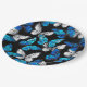 Dark Seamless Pattern with Blue Butterflies Morpho Paper Plate