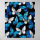Dark Seamless Pattern with Blue Butterflies Morpho Poster