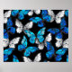 Dark Seamless Pattern with Blue Butterflies Morpho Poster
