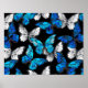 Dark Seamless Pattern with Blue Butterflies Morpho Poster
