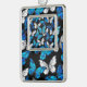 Realistic, blue and white butterflies seamless pattern on black background.