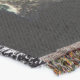 A quality printed throw has its advantages. This is a much finer weave throw than its loopier cousins, and though lighter, it is worth the investment for custom room accessorizing. The back is much prettier than the typical brown, and the fringe on the long sides very vivid, the selvage nicely done. Before photographing, I washed the throw in cold water, delicate, with a thicker woven throw the same size. On tumble dry low, this throw was dry in half the time as the other. This is a very practical quality if you use throws for furniture covers or to wrap up in frequently. The sleekness of the fabric makes it a great layer for accenting or protecting without the feeling of sitting on too much stuff. Perfect for napping or when you feel a light chill coming on. The color printing is beautiful and on this fabric, matched the design and color of my Photoshop image. This is an advantage for blending room fabrics and colors. The fringe on the short sides prints the colors from the design image and therefore varies from the side fringe. I streaked a white fractal line through the plaid pattern to give the illusion of weaving. This printed as crisp as an illusory thread, and put some white in the short side fringe, showing another advantage of print vs loomed- for artistic purposes, line lines, detail, and color integrity can be planned and preserved. My loomed throws have color limitations and more of a needlepoint texture. Print throws reproduce an exact image. The throw felt a little stiff straight out of the package, but this went away in the first delicate wash. Of course I searched the wash water for ink or bleeding and there was none.