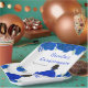 This Quinceanera plate features faux glitter royal blue floral flowers and a beautiful princess with dark skin and an elegant dress. This is perfect for a Quinceanera birthday party.