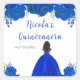 This Quinceanera sticker features faux glitter royal blue floral flowers and a beautiful princess with dark skin and an elegant dress. This is perfect for a Quinceanera birthday party.
