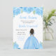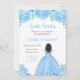 This sweet sixteen invitation features faux glitter bright blue floral flowers and a beautiful princess with dark skin and an elegant dress. This is perfect for a sweet sixteen birthday party.