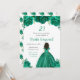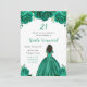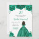 This birthday party invitation features faux glitter green floral flowers and a beautiful princess with dark skin and an elegant dress. This is perfect for a birthday party.