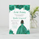 This sweet sixteen invitation features faux glitter green floral flowers and a beautiful princess with dark skin and an elegant dress. This is perfect for a sweet sixteen birthday party.