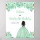 Dark Skin Princess Mint Floral Birthday Welcome Poster