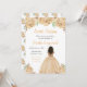 This sweet sixteen invitation features faux glitter champagne peach cream floral flowers and a beautiful princess with dark skin and an elegant dress. This is perfect for a sweet sixteen birthday party.