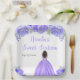 This sweet sixteen plate features faux glitter purple floral flowers and a beautiful princess with dark skin and an elegant dress. This is perfect for a sweet sixteen birthday party.
