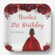 This birthday napkin features faux glitter red floral flowers and a beautiful princess with dark skin and an elegant dress. This is perfect for a birthday party.