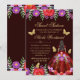 Dark Skin Woman in Mexican Floral Dress Sweet 16 Invitation