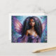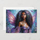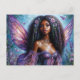 This postcard features a magical Black girl fairy with long, curly afro-textured hair surrounded by a variety of purple blossoms and butterflies. Her purple butterfly wings, flowing corset gown, and lavender and violet blooms hair accessories create a dreamy, ethereal look that captures the beauty of fantasy art and nature. Ideal for fairy lovers, fantasy art collectors, and anyone who adores magical, melanin-rich nature-inspired designs!