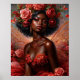 This poster features a radiant painting of a beautiful Black fairy girl adorned in a gown of crimson roses. Her golden gossamer wings, lush blooming rose crown, and ruby red jewelry create a regal and enchanting presence, while fluttering butterflies and vibrant blooms complete the magical fantasy scene. Whether you’re a fairy art collector, rose lover, or fan of the color red, this poster offers an enchanting way to indulge in your preference!